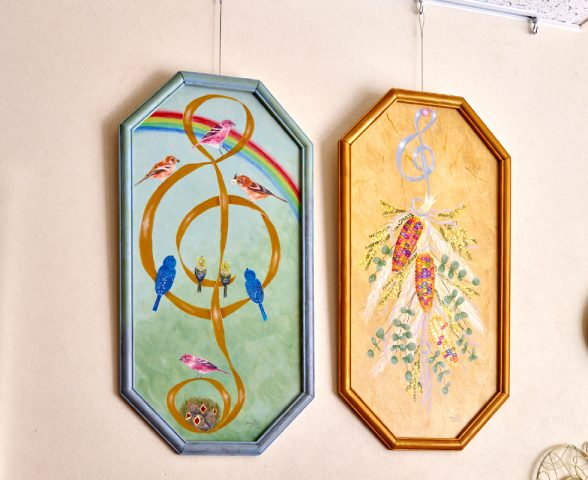 店内にはトールペイントやポーセラーなどの素敵な作品が飾られています。↑作品は西山美術館現代芸術家大全にも紹介されています。