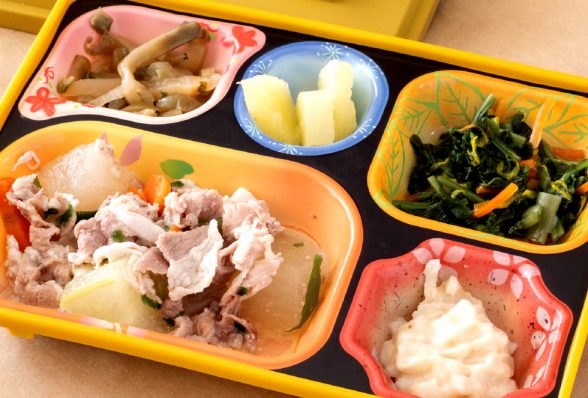 美味しくてヘルシーなお弁当を前日までのお電話で1食からお届けします(前日迄キャンセル無料)。管理栄養士が考案のおかずは、旬の野菜も取り入れ種類豊富で喜ばれています。ヘルシーメニュー(↑全227.5kcal、塩分2.7g、豚肉と冬瓜の炒め煮他)は配達料込723円(介護保険利用550円〜)ご飯付き862円(介護保険利用682円〜)。栄養管理サポート食・介護サポート食なども有り。昼夕、土日、週1日OK!まずは1度気軽にお試しください。