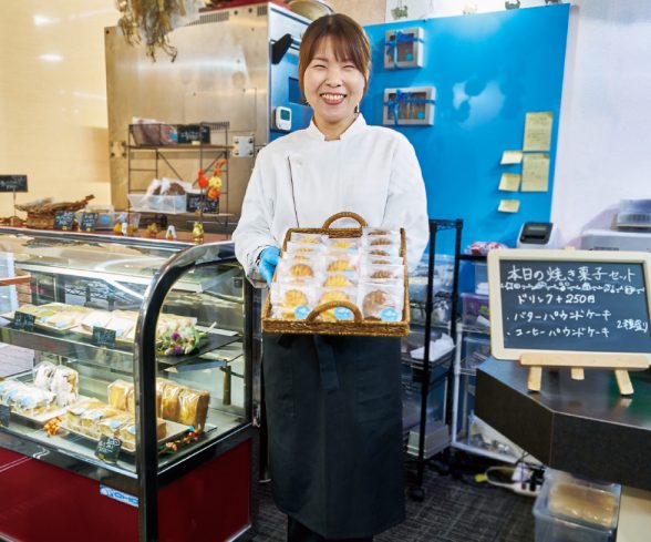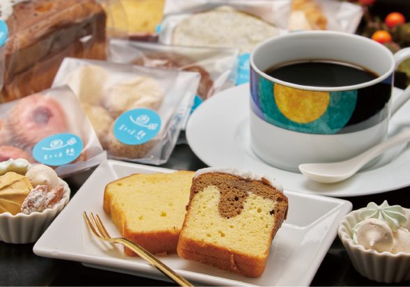 またマルシェや某カフェで人気の“菓子工房 想”さんの焼き菓子も絶品!米油を使用し、焼き上がりにはシロップを染み込ませ仕上げた「しっとりパウンドケーキ」が自慢!