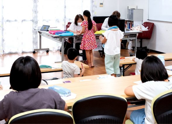 幼児さん〜中学生迄、多くの生徒さんが通っています。幼児教材は、「もじ・かず・ちえ」の教材で考える力を引き出し、小学校入学の土台となる力をつけます。はじめて学習に向かう子ども達を、褒めてやる気を引き出してくれる山田先生がしっかりサポート!安心して小学校入学を迎えられるよう、挨拶などの徳育面の指導も。