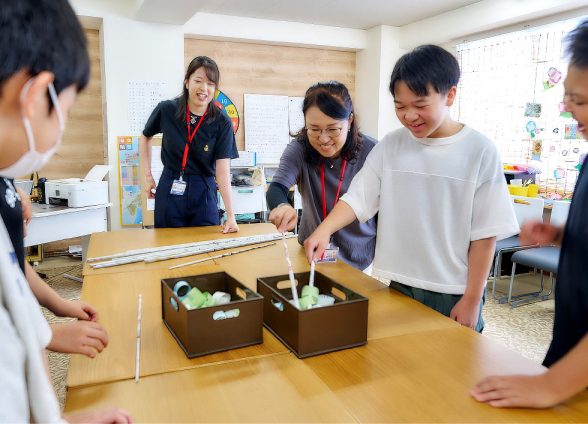 「ここなら行ってみたい!」そんな場所になるよう、一人ひとりの個性や可能性を大切にし、自らの道を歩む力を育みます。不登校の選択を前向きに捉え、お子さんの成長を温かくサポート。①動ける身体づくり→時間割を設け、規則正しい生活を。②遡行学習で自信を取りもどす→つまづきの原因となる箇所まで遡り、学ぶことの発見を通し、自信へ。③仲間の力で一歩を踏み出す→仲間や先生と支え合い、分かち合う経験を通し次への一歩の後押しを。学校側の許可が得られれば、出席扱いとなります。