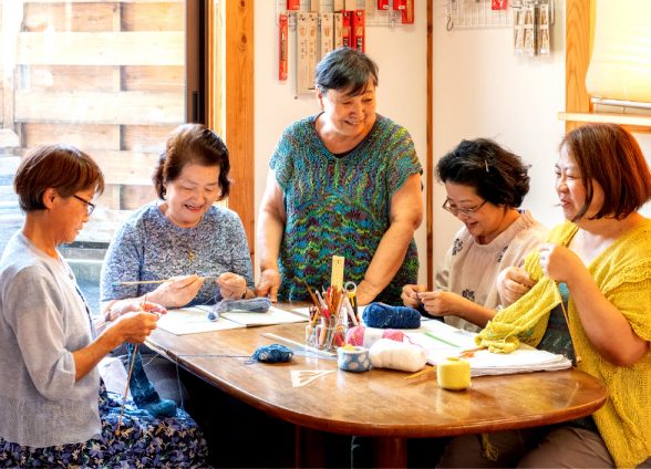編み物は手先や頭を使い、集中力を養い、認知症予防にもお勧め。いつからでも教室入会OK。曜日・時間(詳細下記)をご予約ください。皆で楽しく編み物しましょう。