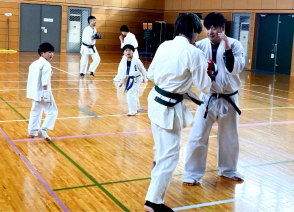 名東区で稽古をしている、楽しみながら上達する空手教室です。和気あいあいとした雰囲気で練習していますので初心者でも大丈夫。気軽に参加できますよ。空手はちょっとこわいイメージがありますが、両手両足をバランスよく使い、バランスや反射神経が鍛えられます。もちろん護身にも役立つ奥の深い格闘技です。ぜひ一度体験して面白さに触れてみてください。お電話かショートメール、meno-m@ezweb.ne.jp、LINEまでお気軽にご連絡お待ちしてします。